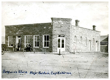 The two-story Noble and Lane Building -This building was the second home to the Noble and Lane Mercantile Business. The face of the mercantile building has changed. It was originally built by Worden P. Noble and Albert D. Lane in 1891. The stone building next to it is where their banking business was housed. This building resembles very closely how it looked in 1891.