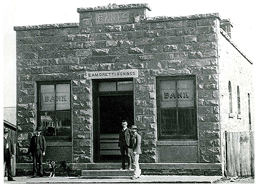 The first bank in Lander was simply known as Amoretti’s Bank. The bank’s true beginnings started in Eugene Amoretti’s store and then moved into the stone building . S. Contant Parks purchased an interest in the bank and it changed to Amoretti and Parks.