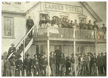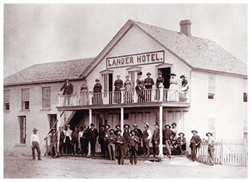 The Lander Hotel -The Lander Hotel was one of the first businesses on Lander’s dusty Main Street. It began as an eating place and stopover for bull-team freighters on their way to Fort Washakie. It was a one-story, four-room log building built by Ben Decora. Later additions were built of adobe and wood.