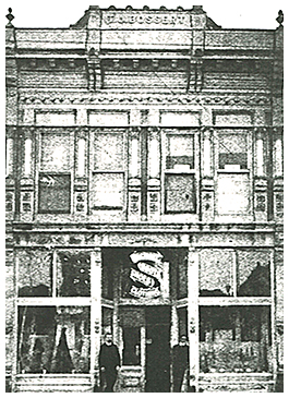 William H. Rhein’s hardware and Sheet Metal store (now the Wyoming State Lands Office at 277 Main St.) was established in 1886. In addition to hardware his store carried a fine line of cutlery, tools, stoves and groceries. A modern day building for its day as it was the first Main Street Store to have plate glass windows. It was quite an accomplishment because the glass had to be brought in by a freight wagon over rough roads and steep hills.