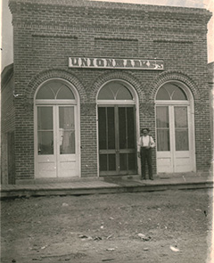 Through the years, the building has been used by a furniture store, remodeled for a movie theater, a Piggly-Wiggly grocery store, a pool hall, a saddlery, a newspaper office, restaurants, and a bakery.